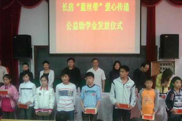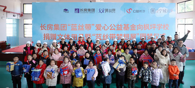 長房“藍絲帶”愛心傳遞基金成立于2007年,由長房集團和長沙市青少年發展基金會共同管理,致力于踐行企業社會責任,優化鄉村教育資源,改善鄉村辦學條件,資助鄉村貧困學生,多年來,長房“藍絲帶”將愛心灑遍三湘四水,將夢想播種萬水千山。累計援助學校40余所,據贈各類愛心物資總計500萬余元,幫助千余困難學子。以實際行動展現國企社會責任與擔當,用愛心點燃無限希望,